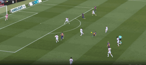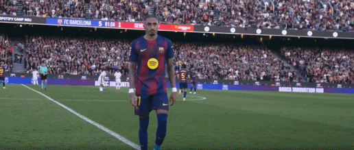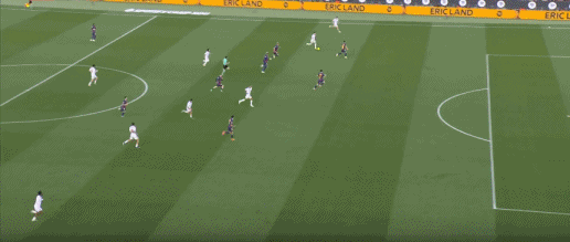 第38分钟,贝尔纳尔传球发生折射,奥尔莫破门,巴萨3-0塞维利亚