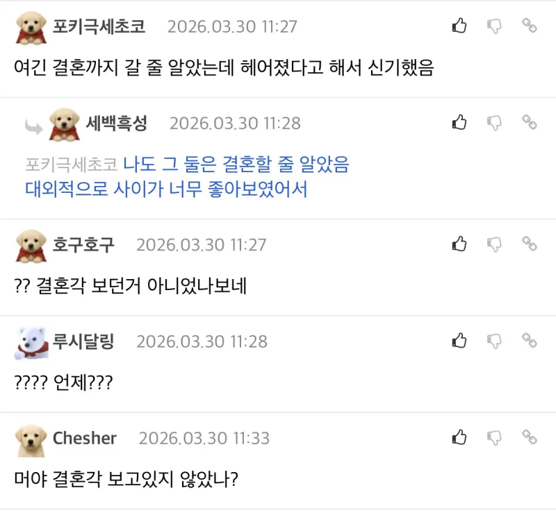 ——我还以为他们结婚了诶,听说他们分手了好神奇;